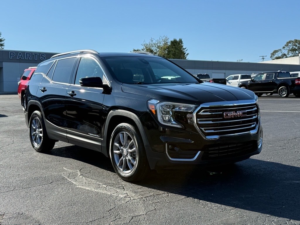 2024 GMC Terrain SLT ** LEATHER **, Heated Seats, ** NAVIGATION (NAVI/GPS) **, Keyless Entry, ** Apple CarPlay **, *ONE OWNER*, Cruise Control, ** BLUETOOTH **, 4D Sport Utility, 1.5L DOHC, 9-Speed Automatic, AWD, Ebony Twilight Metallic, Black Leather, 2 USB Data Ports, 4-Wheel Disc Brakes, ABS brakes, Air Conditioning, Alloy wheels, AM/FM radio: SiriusXM, Auto High-beam Headlights, Automatic temperature control, Bluetooth® For Phone, Driver & Front Passenger Heated Seats, Dual front impact airbags, Dual front side impact airbags, Electronic Stability Control, Four wheel independent suspension, Front Bucket Seats, Front dual zone A/C, Front fog lights, Garage door transmitter, Heated door mirrors, Heated front seats, Heated steering wheel, Illuminated entry, Low tire pressure warning, Memory seat, Navigation System, Occupant sensing airbag, Panic alarm, Perforated Leather-Appointed Seat Trim, Power driver seat, Power Liftgate, Power passenger seat, Power steering, Power windows, Preferred Equipment Group 4SA, Rear window wiper, Remote keyless entry, Security system, SiriusXM, Speed control, Speed-sensing steering, Steering wheel mounted audio controls, Telescoping steering wheel, Tilt steering wheel, Traction control, Variably intermittent wipers. CARFAX One-Owner. SLT 23/28 City/Highway MPG