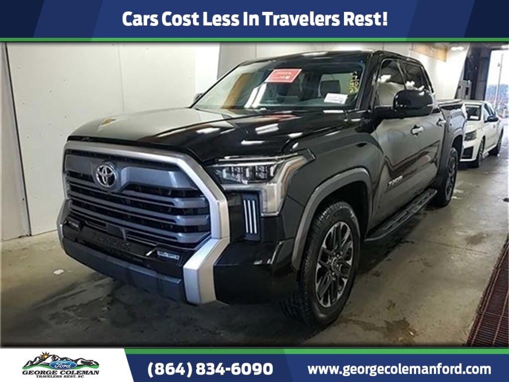 2023 Toyota Tundra Limited Tundra Limited, 4D CrewMax, 3.4L V6, 10-Speed Automatic, RWD, Black, 20" x 8" Alloy Wheels, 9 Speakers, Auto High-beam Headlights, Automatic temperature control, Backup Camera, Front dual zone A/C, Front fog lights, Fully automatic headlights, Memory seat, Navigation System, Panic alarm, Power driver seat, Power windows, Rear window defroster, Remote keyless entry, Speed control. CARFAX One-Owner. Limited