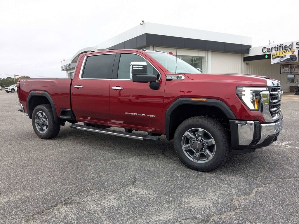 2026 GMC Sierra 2500HD SLT 6.6L V8 4WD Volcanic Red Tintcoat 10-Speed Automatic, 4WD, Dark Walnut/Slate Leather.