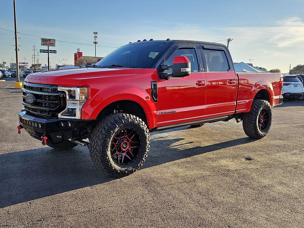 2021 Ford F-250SD Lariat Power Stroke 6.7L V8 DI 32V OHV Turbodiesel 10-Speed Automatic 4WD Race Red F-250 SuperDuty Lariat, 4D Crew Cab, Power Stroke 6.7L V8 DI 32V OHV Turbodiesel, 10-Speed Automatic, 4WD, Race Red, Black Leather, 10 Speakers, 110V/400W Outlet, 4-Wheel Disc Brakes, ABS brakes, Adaptive Steering, Adjustable pedals, Air Conditioning, Alloy wheels, AM/FM radio: SiriusXM, Ambient Lighting - Fixed Color, Automatic temperature control, Brake assist, Easy Entry®/Exit Memory Driver's Seat Feature, Electronic Stability Control, Engine Block Heater, Exterior Parking Camera Rear, Front dual zone A/C, FX4 Off-Road Package, GVWR: 10,000 lb Payload Package, Heated door mirrors, Heated Steering Wheel, High Capacity Trailer Tow Package, Hill Descent Control, Intelligent Access w/Push-Button Start, Lane-Keeping Alert, Lariat Ultimate Package, LED Box Lighting, Memory Power-Adjustable Pedals, Off-Road Specifically Tuned Shock Absorbers, Order Code 608A, Outside temperature display, Overhead airbag, Panic alarm, Power door mirrors, Power driver seat, Power Heated/Ventilated Driver Seat w/Memory, Power Heated/Ventilated Passenger Seat, Power passenger seat, Power steering, Power Telescoping/Tilt Steering Wheel/Column, Power windows, Power-Deployable Running Boards, PowerScope Trailer Tow Mirrors w/Heat, PowerScope Trailer Tow Mirrors w/Memory, Pro Trailer Backup Assist - High Capacity, Quad Beam LED Headlamps & LED Taillamps, Radio data system, Radio: B&O System by Bang & Olufsen, Rain-Sensing Windshield Wipers, Rear Parking Sensors, Rear reading lights, Rear seat center armrest, Rear step bumper, Remote keyless entry, Remote Start System, Remote Tailgate Release, Security system, SiriusXM Radio, Speed control, SYNC 3 Communications & Entertainment System, Tailgate Step & Handle, Telescoping steering wheel, Tilt steering wheel, Turn signal indicator mirrors, Twin Panel Power Moonroof, Ultimate Trailer Tow Camera System, Unique FX4 Off-Road Box Decal, Universal Garage Door Opener (UGDO), Upfitter Switches (6), Variably intermittent wipers, Voice-Activated Navigation, Wheels: 18" Bright Machined Cast Aluminum, Wheels: 20" Bright Machined Cast Aluminum. Odometer is 20454 miles below market average!