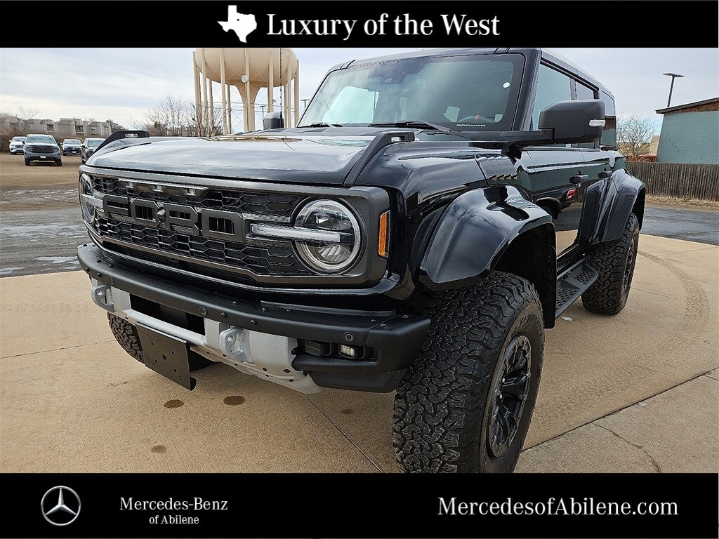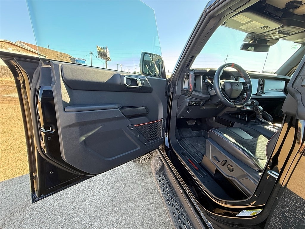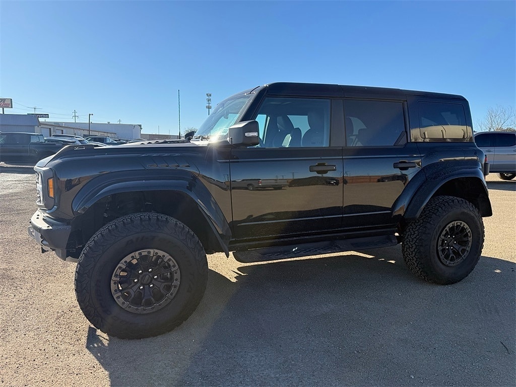 Recent Arrival! 2025 Ford Bronco Raptor 3.0L EcoBoost V6 10-Speed Automatic 4WD Shadow Black Bronco Raptor, 4D Sport Utility, 3.0L EcoBoost V6, 10-Speed Automatic, 4WD, Shadow Black, Black Onyx Leather, ABS brakes, Alloy wheels, Auto High-beam Headlights, Auto-dimming Rear-View mirror, Connected Navigation, Delay-off headlights, Dual front impact airbags, Dual front side impact airbags, Electronic Stability Control, Emergency communication system: 911 Assist, Equipment Group 374A Lux Package, Exterior Parking Camera Rear, Front anti-roll bar, Front Bucket Seats, Front dual zone A/C, Front fog lights, Front wheel independent suspension, Fully automatic headlights, Garage door transmitter, Glass rear window, Hard Top Sound Deadening Headliner, Heated door mirrors, Heated front seats, Heated steering wheel, Illuminated entry, Integrated roll-over protection, Interior Carbon Fiber Pack, Internet access capable: FordPass Connect, Low tire pressure warning, Navigation system: Connected Navigation, Occupant sensing airbag, Overhead airbag, Power door mirrors, Radio: B&O Sound System by Bang & Olufsen, Rear anti-roll bar, Rear window defroster, Rear-Window Defroster & Washer, Remote keyless entry, Security system, Shadow Black Painted Hard Top, SiriusXM w/360L, Speed control, Steering wheel mounted audio controls, SYNC 4, Telescoping steering wheel, Turn signal indicator mirrors, Variably intermittent wipers, Wheels: 17" Black High Gloss-Painted Aluminum.