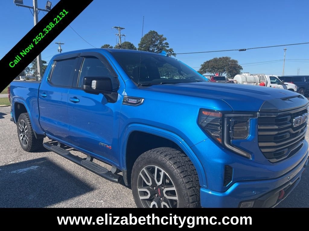 Recent Arrival! 2023 GMC Sierra 1500 AT4 3.0L I6 4WD Dynamic Blue Metallic Sierra 1500 AT4, 4D Crew Cab, 3.0L I6, 10-Speed Automatic, 4WD, Dynamic Blue Metallic, Jet Black With Kalahari Accents Leather, 120-Volt Bed Mounted Power Outlet, 120-Volt Instrument Panel Power Outlet, 2 Charge/Data USB Ports Inside Center Console, 2 Type-C Charge-Only Rear USB Ports, 2 USB Ports, 220 Amp Alternator, Adaptive Cruise Control, AT4 Preferred Package, Auto-Locking Rear Differential, Bed View Camera, Black Chrome Header & Grille Insert Bars, Color-Keyed Carpeting Floor Covering, Compass, Deep-Tinted Glass, Electric Rear-Window Defogger, Electrical Steering Column Lock, Floor-Mounted Center Console, Front Prem Floor Liners w/Removable Carpet Insert, Front Rainsensing Wipers, GMC Connected Access Capable, HD Surround Vision, Heated 2nd Row Outboard Seats, Heated Driver & Front Outboard Passenger Seating, Heavy-Duty Air Filter, Hill Descent Control, Hitch Guidance, Hitch Guidance w/Hitch View, In-Vehicle Trailering App, Integrated Trailer Brake Controller, Keyless Open & Start, LED Cargo Area Lighting, Multicolor 15 Diagonal Head-Up Display, Navigation System, OnStar & GMC Connected Services Capable, Perimeter Lighting, Power Door Locks, Power Front Passenger Windows w/Express Up/Down, Power Front Windows w/Driver Express Up/Down, Power Rake & Telescoping Steering Column, Power Rear Windows w/Express Down, Power Sliding Rear Window w/Rear Defogger, Preferred Equipment Group 4SB, Premium Bose 7-Speaker Sound System, Push Button Start, Rear Camera Mirror, Rear Cross Traffic Braking, Rear Pedestrian Detection, Rear Prem Floor Liners w/Removable Carpet Insert, Rear Wheelhouse Liners, Red Recovery Hooks, Remote Vehicle Starter System, SiriusXM w/360L, Spray-On Pickup Bed Liner w/AT4 Logo, Steering Wheel Audio Controls, Technology Package, Theft Deterrent System (Unauthorized Entry), Trailer Camera Provisions, Trailer Side Blind Zone Alert, Trailering Package, Ultrasonic Front & Rear Park Assist, Universal Home Remote, Ventilated Driver & Front Passenger Seats, Wi-Fi Hotspot Capable, Wireless Charging, Wireless Phone Projection. Odometer is 7549 miles below market average!------ Because we value you & your time, we use a Market Based Pricing System to provide you a great value from the very beginning. ** Call now (252) 338-2131 ** or e-mail leads@elizabethcitybg.com *** Price includes a $1,000 trade assistance discount and $1,000 Customer loyalty discount. See dealer for details.