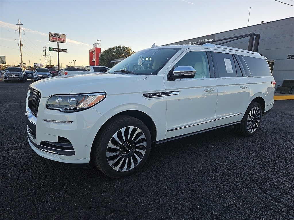 Recent Arrival! 2023 Lincoln Navigator L L Black Label V6 10-Speed Automatic 4WD Pristine White Metallic Tri-Coat Clean CARFAX. CARFAX One-Owner. 2nd Row Htd/Vent Enhcd Massage Seats w/out Console, 3.73 Axle Ratio, 3rd row seats: split-bench, Active Park Assist 2.0 Delete, Adjustable pedals, All-Weather Floor Liners w/Carpet Floor Mats, Auto Start-Stop Technology, Auto tilt-away steering wheel, Auto-dimming Rear-View mirror, Black Label Special Edition Package, Black Painted Cap Sideview Mirror, Black Painted Roof, Black Painted Roof Rack, Brake assist, Bumpers: body-color, Compass, Driver door bin, Driver vanity mirror, Electronic Stability Control, Exterior Parking Camera Rear, Floor Carpet/Mats - Espresso w/Dinamica Suede, Fully automatic headlights, Garage door transmitter, Hands-Free Liftgate Delete, Headliner - Alpine Dinamica Suede, Heated door mirrors, Heated front seats, Heated rear seats, Heated steering wheel, Leather steering wheel, Leather-Wrapped Interior - Alpine w/Black Stitch, Outside temperature display, Overhead airbag, Overhead console, Power adjustable front head restraints, Power adjustable rear head restraints, Power door mirrors, Power Liftgate, Power moonroof: Panoramic Vista Roof, Power passenger seat, Rain sensing wipers, Rear anti-roll bar, Rear reading lights, Rear seat center armrest, Rear window wiper, Reclining 3rd row seat, Silverwood Recon Appliques, Speed control, Speed-Sensitive Wipers, Split folding rear seat, SYNC 4 Communications & Entertainment System, Tachometer, Telescoping steering wheel, Tilt steering wheel, Trip computer, Turn signal indicator mirrors, Unique Chrome Surround Grille, Variably intermittent wipers, Venetian Lthr Auto Htd/Ventilatd Capt's Chairs (B), Ventilated front seats, Ventilated rear seats, Voice-Activated Touchscreen Navigation System, Wheels: 22" 14-Spoke Bright Machined Aluminum, Wheels: 22" Black Aluminum.