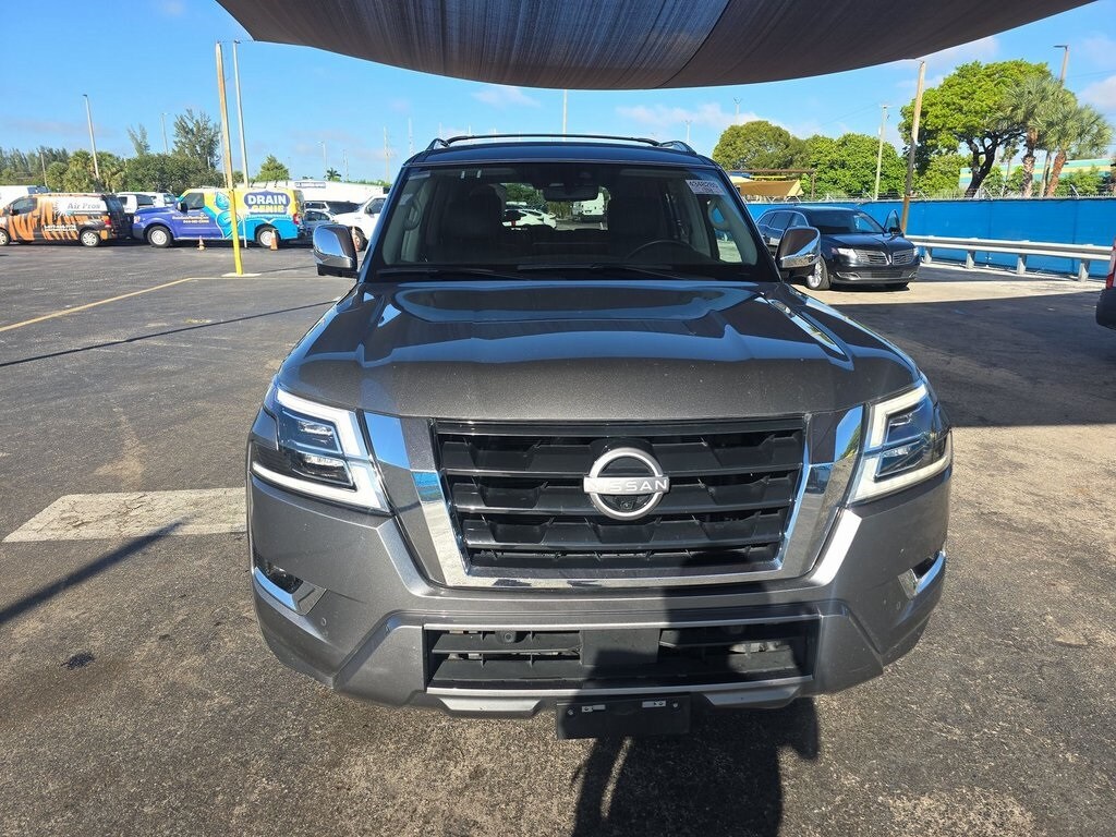 4WD, 13 Speakers, 2.94 Axle Ratio, 3rd Row Carpeted Floor Mats - Bench Seat, 3rd row seats: split-bench, 4-Wheel Disc Brakes, A/V remote, ABS brakes, Air Conditioning, Alloy wheels, AM/FM radio: SiriusXM, Anti-whiplash front head restraints, Auto High-beam Headlights, Auto tilt-away steering wheel, Auto-dimming door mirrors, Auto-dimming Rear-View mirror, Auto-leveling suspension, Automatic temperature control, Bose 13-Speaker Premium Audio System, Brake assist, Bumpers: body-color, Cargo Package, Climate-Controlled Front Bucket Seats, Cross Bars, Delay-off headlights, Driver door bin, Driver vanity mirror, Dual front impact airbags, Dual front side impact airbags, Electronic Stability Control, Emergency communication system: NissanConnect Services, Exterior Parking Camera Rear, Four wheel independent suspension, Front anti-roll bar, Front Bucket Seats, Front Center Armrest, Front dual zone A/C, Front fog lights, Front reading lights, Fully automatic headlights, Garage door transmitter: HomeLink, Headphones, Heated door mirrors, Heated front seats, Heated rear seats, Heated steering wheel, Illuminated entry, Illuminated Kick Plates, Illuminated Scuff Plate, Knee airbag, Leather Shift Knob, Low tire pressure warning, Memory seat, Navigation System, NissanConnect featuring Apple CarPlay and Android Auto, Occupant sensing airbag, Outside temperature display, Overhead airbag, Overhead console, Panic alarm, Passenger door bin, Passenger vanity mirror, Power door mirrors, Power driver seat, Power Liftgate, Power moonroof, Power passenger seat, Power steering, Power windows, Premium audio system: Bose, Quilted Leather Seat Trim, Radio: NissanConnect w/SiriusXM, Rain sensing wipers, Rear air conditioning, Rear anti-roll bar, Rear reading lights, Rear seat center armrest, Rear window defroster, Rear window wiper, Rear-Seat Entertainment, Reclining 3rd row seat, Remote keyless entry, Security system, Speed control, Speed-sensing steering, Speed-Sensitive Wipers, Split folding rear seat, Spoiler, Steering wheel memory, Steering wheel mounted audio controls, Tachometer, Telescoping steering wheel, Tilt steering wheel, Traction control, Trip computer, Turn signal indicator mirrors, Variably intermittent wipers, Ventilated front seats, Voltmeter, Wheels: 22" x 8J Machine-Faced w/Tinted Clear Coat, 4WD.