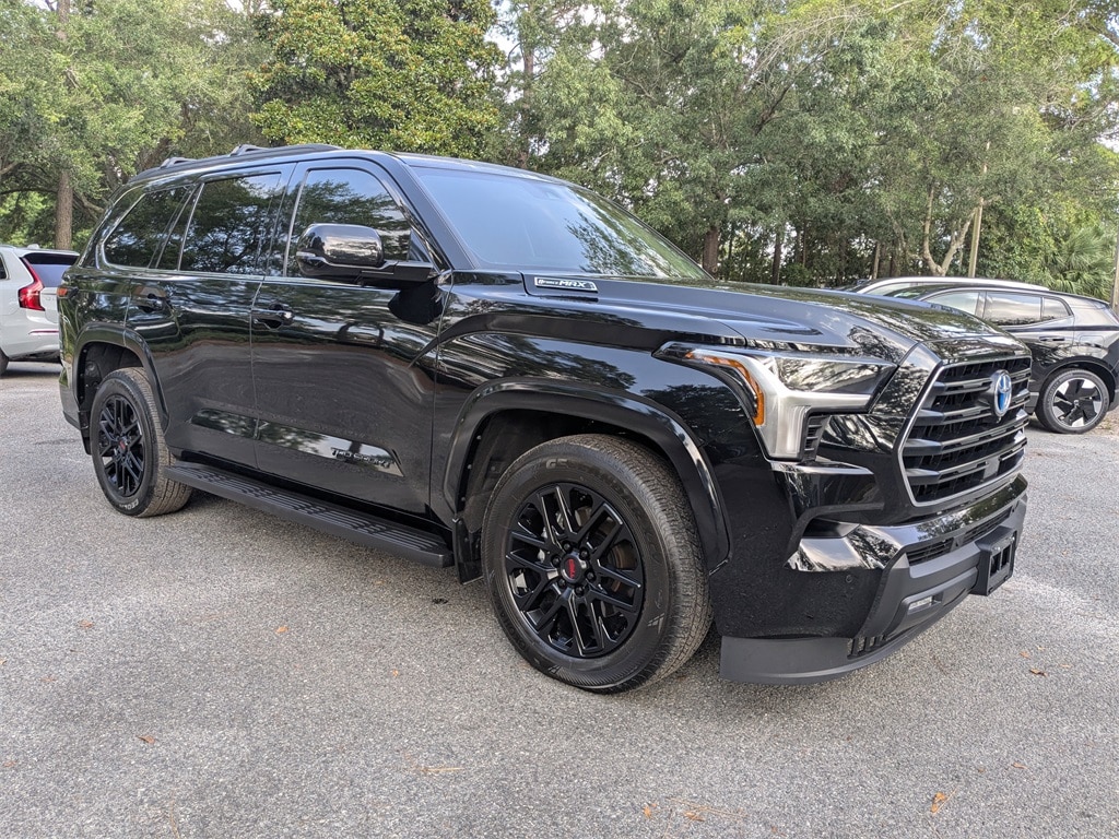 Sunroof/Moonroof, Leather Seats, CarPLay, Bluetooth, Backup Camera, Appearance Package, Sequoia SR5, 4D Sport Utility, V6 Hybrid, 10-Speed Automatic, 4WD, 3rd row seats: split-bench, Heated door mirrors, Heated front seats, Power door mirrors, Power passenger seat, Rear seat center armrest, Reclining 3rd row seat, Split folding rear seat, Turn signal indicator mirrors, 3.31 Axle Ratio, 4-Wheel Disc Brakes, ABS brakes, Air Conditioning, Alloy wheels, AM/FM radio: SiriusXM, Anti-whiplash front head restraints, Apple CarPlay/Android Auto, Auto High-beam Headlights, Auto-dimming door mirrors, Auto-dimming Rear-View mirror, Automatic temperature control, Brake assist, Bumpers: body-color, Delay-off headlights, Driver door bin, Driver vanity mirror, Dual front impact airbags, Dual front side impact airbags, Electronic Stability Control, Emergency communication system: Safety Connect (10-year trial), Exterior Parking Camera Rear, Front anti-roll bar, Front Bucket Seats, Front Center Armrest w/Storage, Front dual zone A/C, Front fog lights, Front reading lights, Front wheel independent suspension, Fully automatic headlights, Headlight cleaning, Illuminated entry, Knee airbag, Leather Shift Knob, Leather steering wheel, Low tire pressure warning, Occupant sensing airbag, Outside temperature display, Overhead airbag, Overhead console, Panic alarm, Passenger door bin, Passenger vanity mirror, Power driver seat, Power moonroof, Power steering, Power windows, Rear air conditioning, Rear reading lights, Rear window defroster, Rear window wiper, Remote keyless entry, Security system, Speed control, Speed-sensing steering, Spoiler, Steering wheel mounted audio controls, Tachometer, Telescoping steering wheel, Tilt steering wheel, Tow Technology Package, Traction control, Trip computer, Variably intermittent wipers, Voltmeter, Sequoia SR5, 4D Sport Utility, V6 Hybrid, 10-Speed Automatic, 4WD, 3rd row seats: split-bench, Heated door mirrors, Heated front seats, Power door mirrors, Power passenger seat, Rear seat center armrest, Reclining 3rd row seat, Split folding rear seat, Turn signal indicator mirrors.
